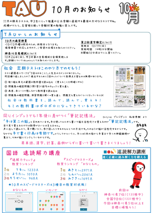 ・ 10月26日(日)、中3対象の全県模試を会場実施します。